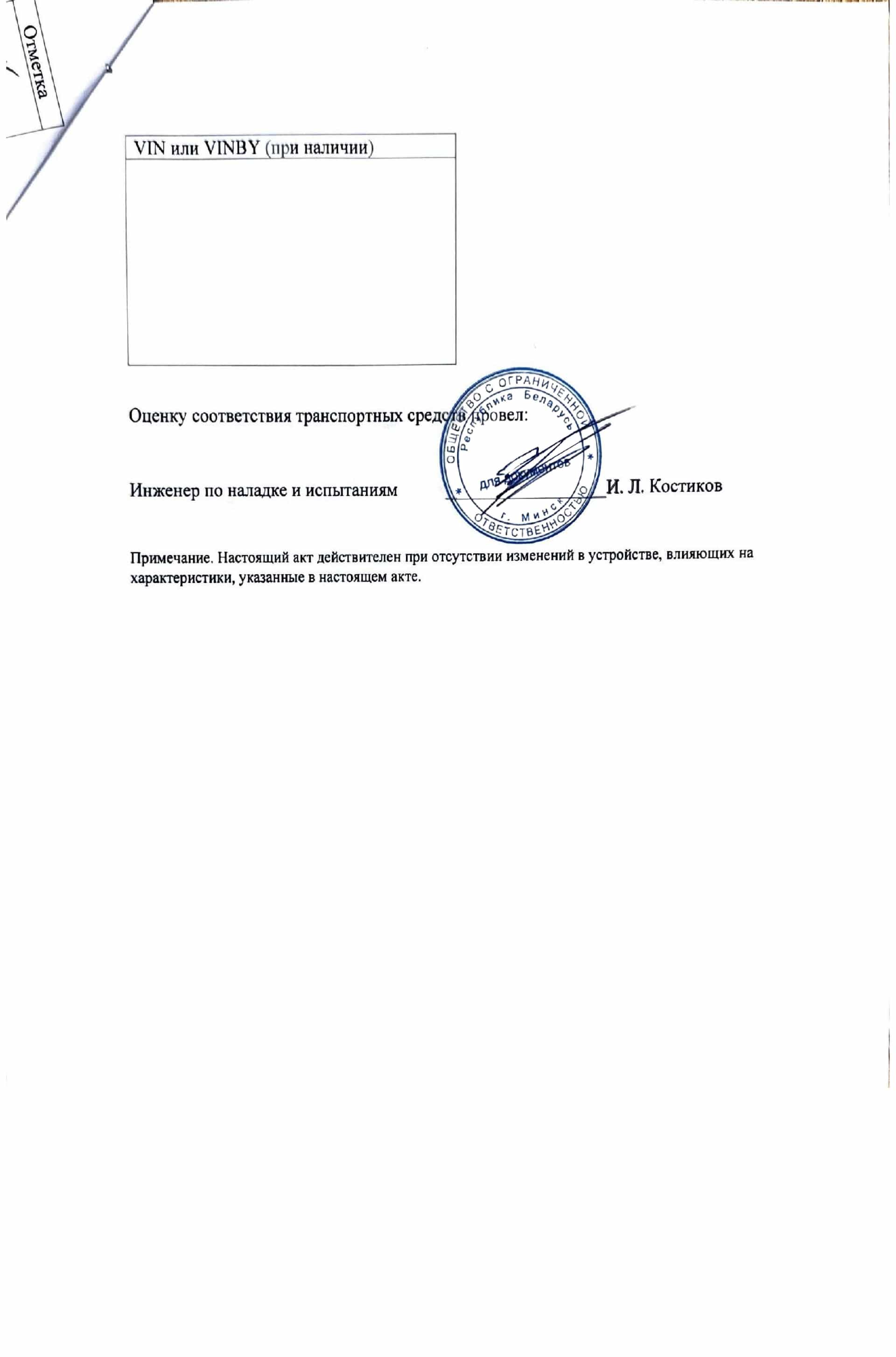получен акт подтверждающий,
